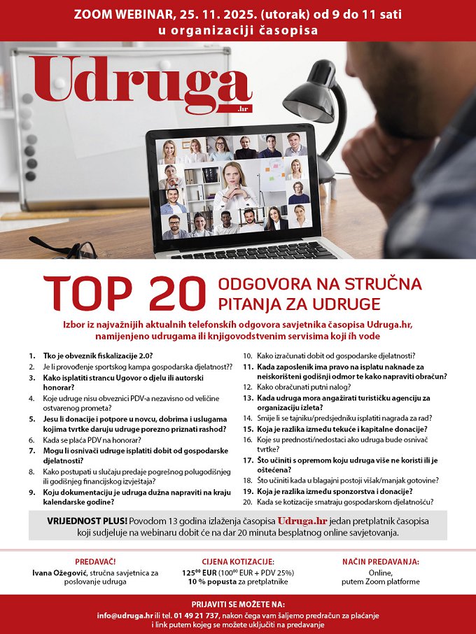 ZOOM WEBINAR: TOP 20 odgovora na stručna pitanja za udruge
